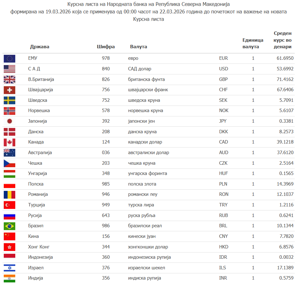 Курсна листа на НБРМ: Ова е денешната…